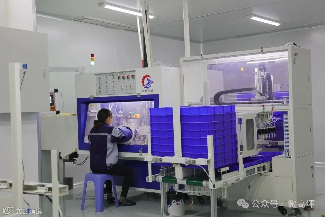 目前,我们搭建了三条PACK锂离子电池智能化生产线,现已全部投产,年产能达到1亿支,产值超3亿元,能解决就业岗位200人。我们的全自动卷绕机合格率超过99.9%,误差率小于0.1%,一个工人可以操作10台这种全自动卷绕机。同时,在生产端,还引入了全自动智能化生产线,卷绕环节节省60%人力成本,烘烤效率较同行提升200%,产能实现大幅增长。