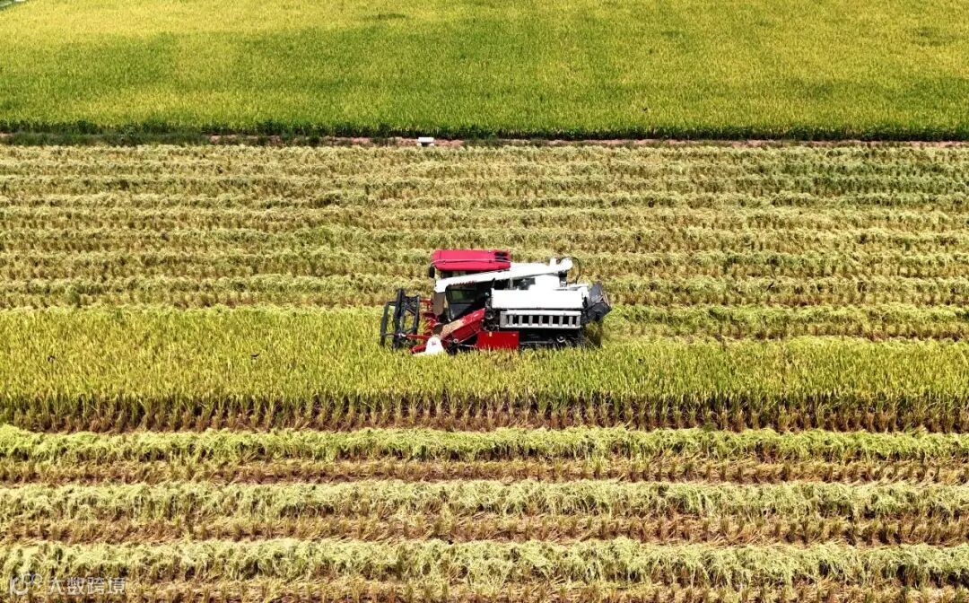 蓬安县罗家镇泥巴寺村高标准农田内,收割机正在收割水稻。周亮 摄