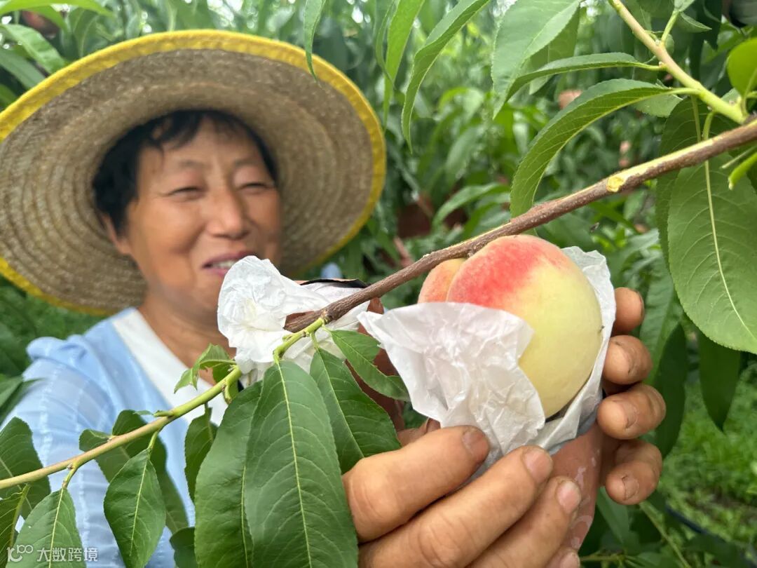 工人检查桃子生长情况。南充市融媒体中心记者 张瀚誉 摄