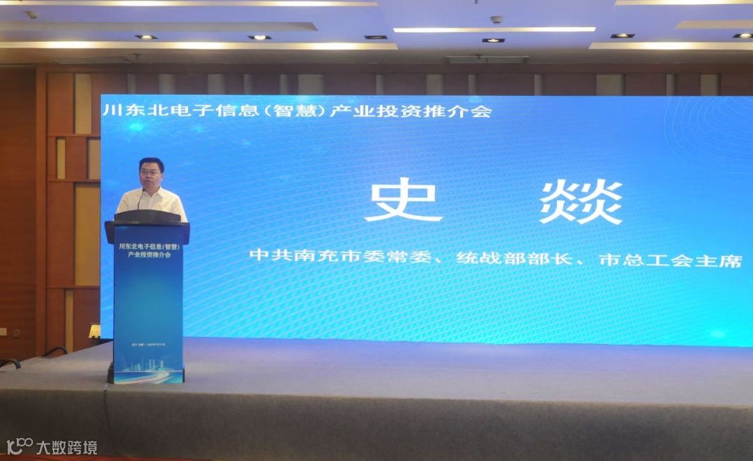 7月11日上午,由四川省贸促会、四川国际商会指导,川东北经济区五地贸促、经信部门联合举办的川东北电子信息(智慧)产业投资推介会在成都世纪城假日酒店隆重举行。省贸促会党组成员、副会长、机关党委书记雷学杰,市委常委、统战部部长、市总工会主席史燚出席大会并致辞。会议由市贸促会党组成员、副会长吴翰林(主持工作)主持。