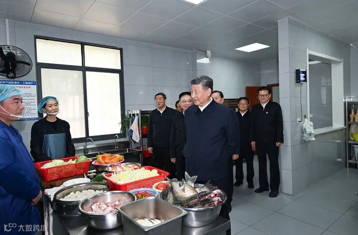 11月4日至6日,中共中央总书记、国家主席、中央军委主席习近平在湖北考察。这是5日上午,习近平在咸宁市嘉鱼县潘家湾镇四邑村养老服务驿站食堂考察。新华社记者 谢环驰 摄
