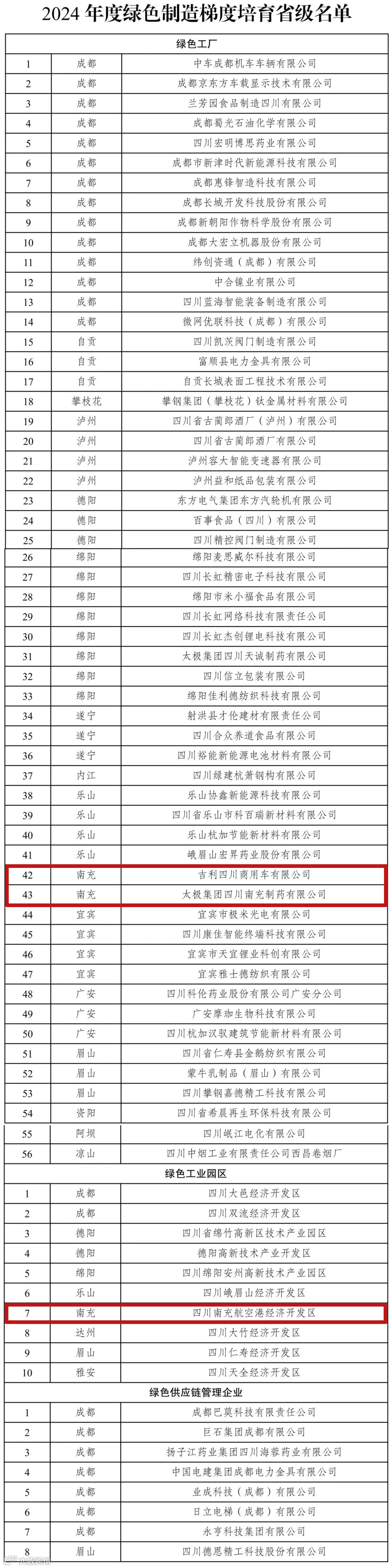 日前,四川省经济和信息化厅公布了2024年度绿色制造梯度培育省级名单,其中包括56个绿色工厂、10个绿色工业园区,8个绿色供应链管理企业。