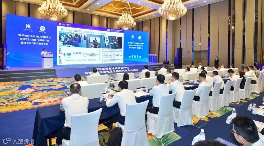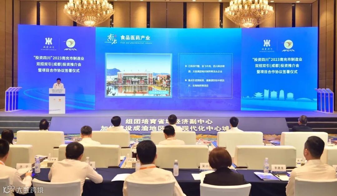 “投资四川”2023南充市制造业双招双引(成都)投资推介会暨项目合作协议签署仪式现场。