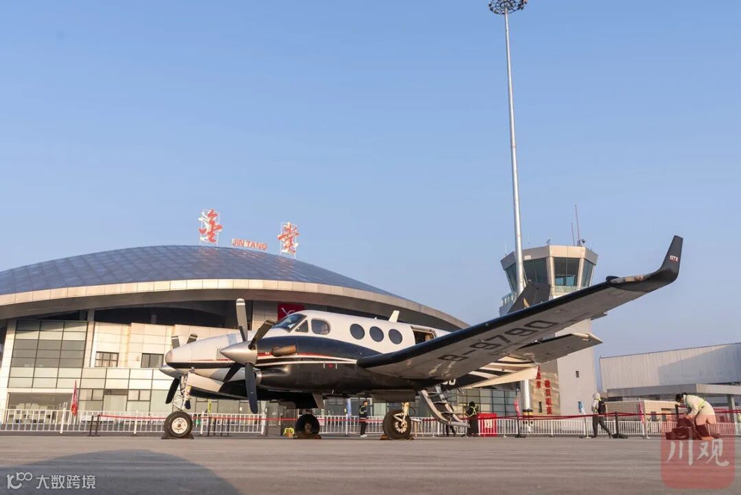 金堂起飞的空中国王C90双发飞机,平稳降落在