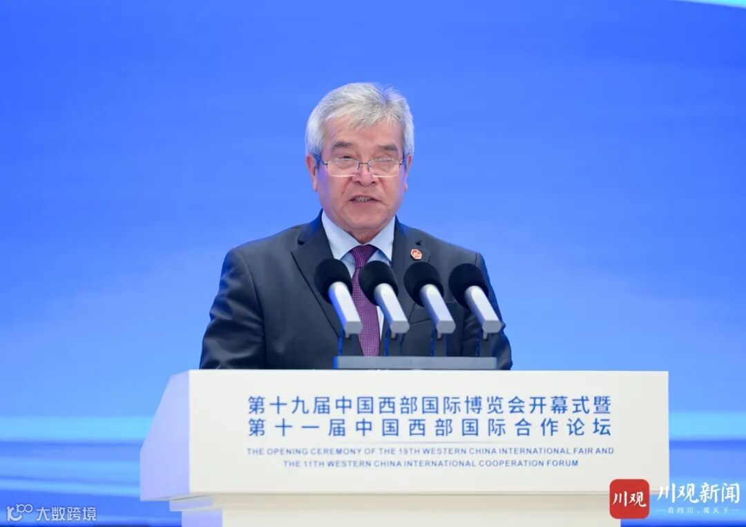 卡斯马穆别托夫说,吉中两国是新时代全面战略伙伴关系。吉方高度重视“一带一路”倡议,并给予积极支持。四川作为中国西部国际博览会的举办地绝非巧合,这里是共建“一带一路”的重要节点。我们看到,西博会已成为中国西部加强中外贸易和投资合作的重要平台,中国西部地区及中国其他地区省份都通过这个平台实现了良好的发展。这个平台也为推进吉中两国投资、出口和旅游等领域合作创造了良好条件。我们希望双方在实现绿色发展、创新发展方面深化合作,发挥各自优势,共同积极应对现代化挑战及要求。这里,诚邀中国企业积极参与合作,联合实施项目。我们将为大家在吉方的投资活动创造一切舒适安全的条件。祝愿本次博览会圆满成功,祝愿两国人民健康幸福、繁荣顺遂。