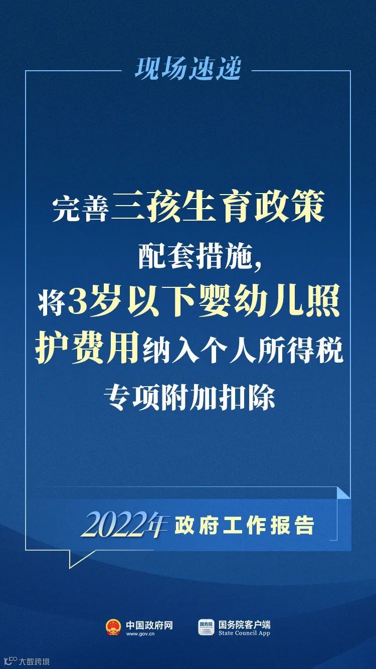 社会保障:完善三孩生育政策配套措施,将3岁以下婴幼儿照护费用纳入个人所得税专项附加扣除,发展普惠托育服务