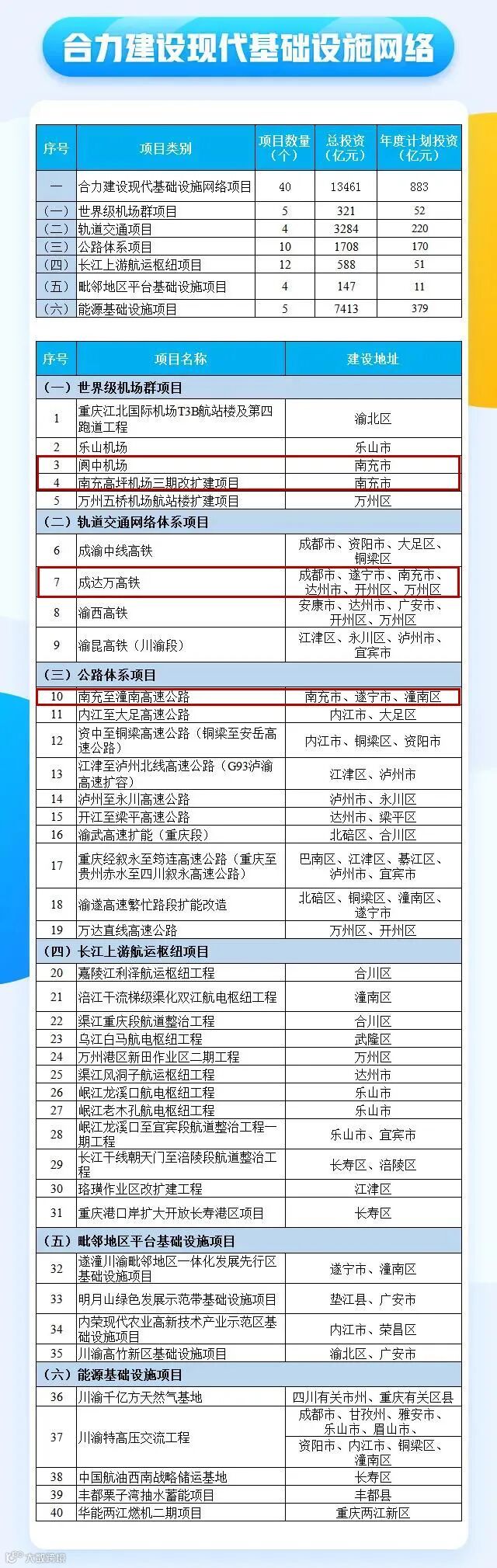 其中,合力建设现代基础设施网络项目投资最大,40个合计总投资13461亿元,今年计划投资883亿元。