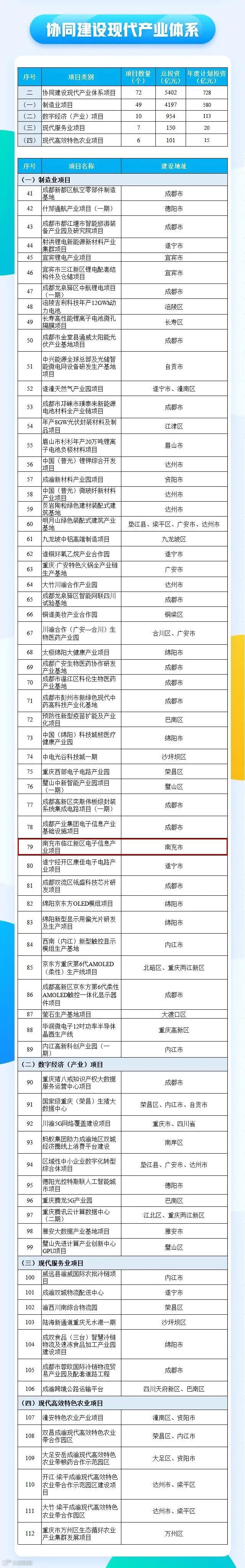 根据川渝党政联席会议第四次会议审议,2月8日,推动成渝地区双城经济圈建设联合办公室印发《关于做好共建成渝地区双城经济圈2022年重大项目实施有关工作的通知》(以下简称《通知》),给出年度项目清单和投资额度及保障措施。