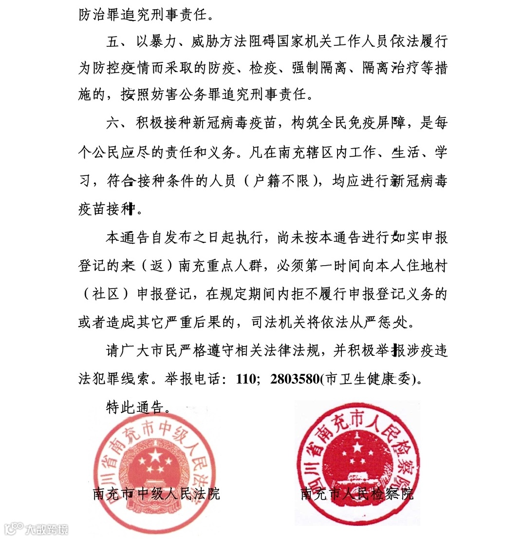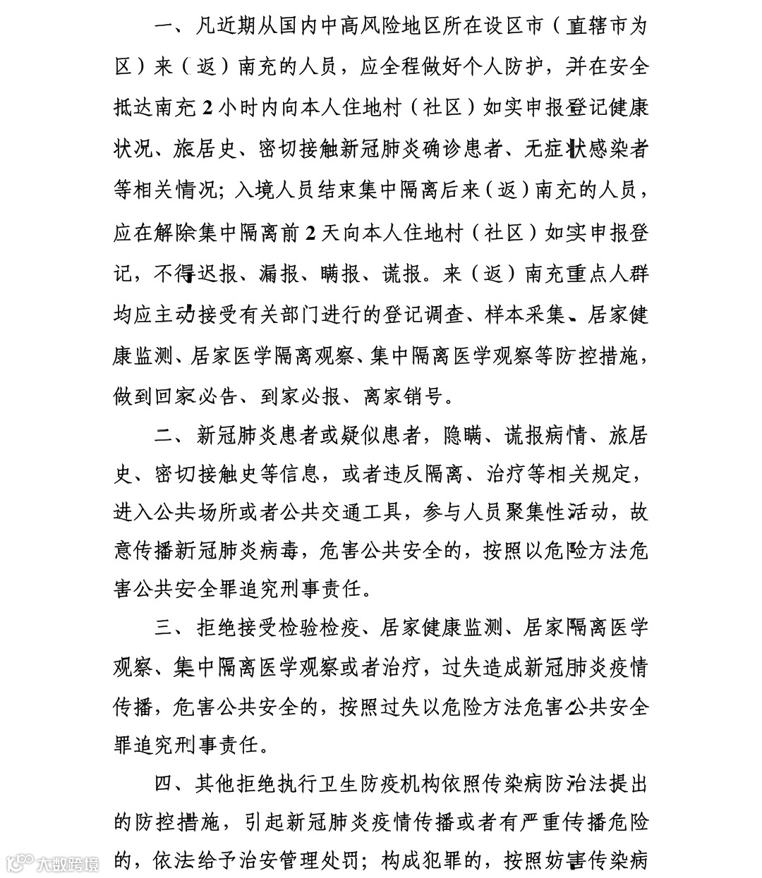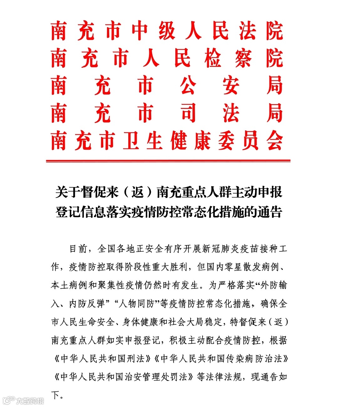 南充五部门联合发文:来(返)南重点人群主动申报登记!违者严惩!监督举报电话公布——
