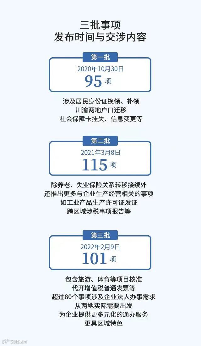 2020年至今,为推进成渝地区双城经济圈“放管服”改革,方便企业和群众办事,川渝两地先后联合推出了三批共311项“川渝通办”政务服务事项清单,成渝地区双城经济圈内一系列便民事项相继落地,同时两省市企业间的合作也在不断深化,相互投资在增多。