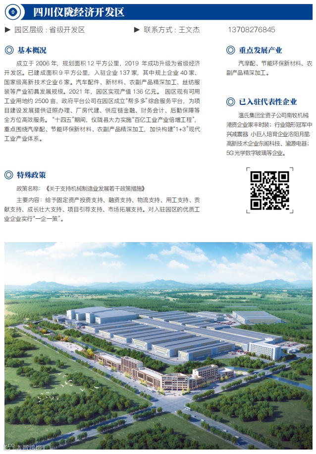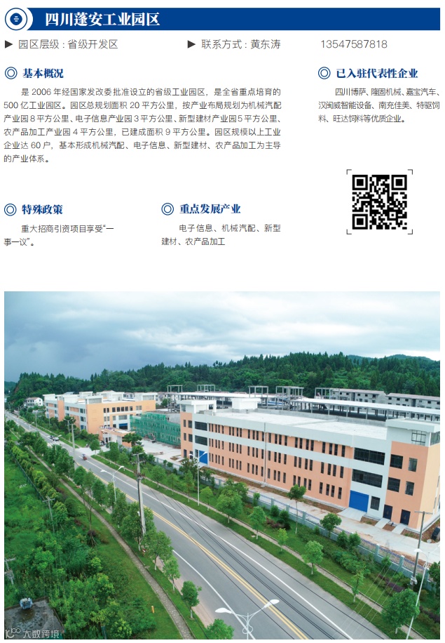 四川吉利商用车、中专汽车两家整车生产企业及中国重汽、日上集团等汽配企业;三环电子、华讯方舟、凯普松等电子信息企业;九天真空、中科九微等高端装备制造企业;传化集团、四川南鑫等物流企业。