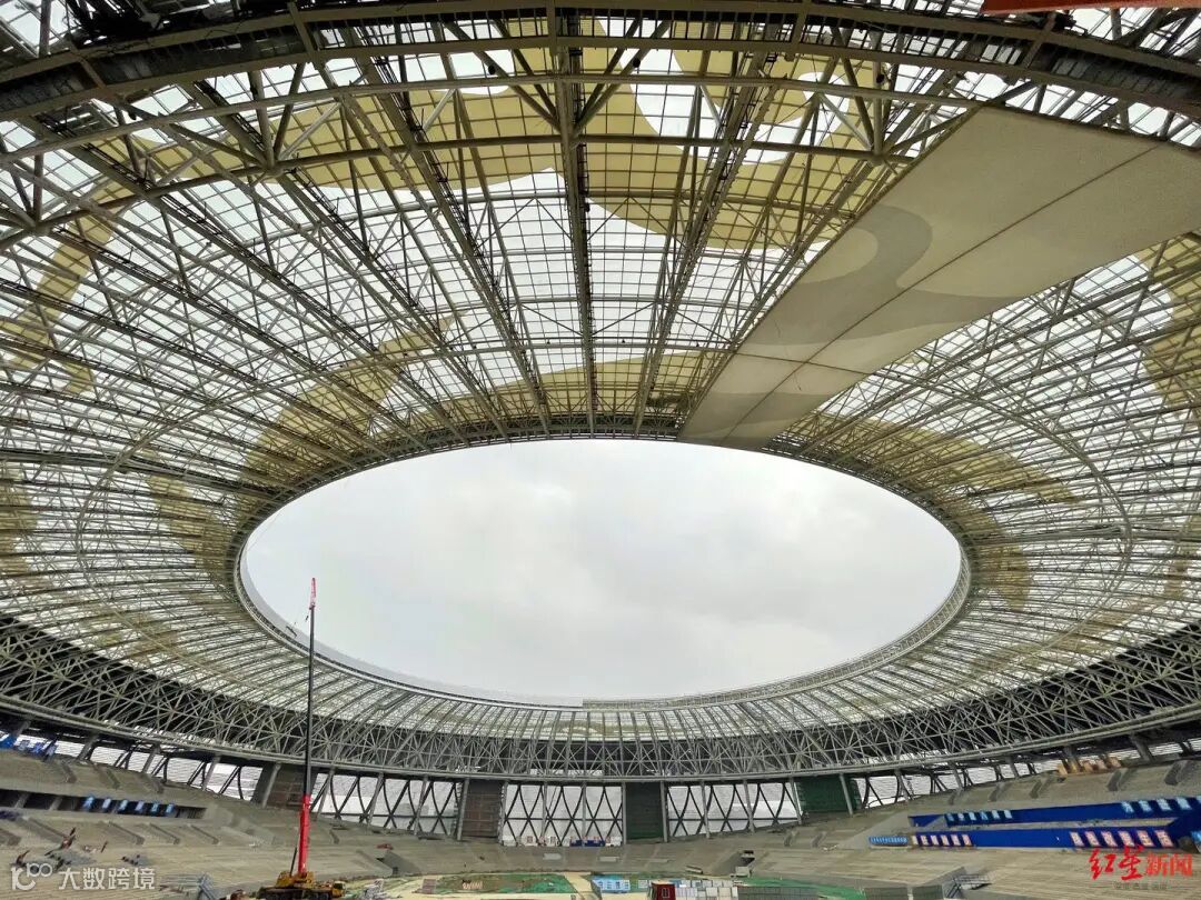 目前,东安湖体育公园主体育场已完成主体结构、钢结构封顶,金属屋面也已安装完成,幕墙正处于收尾阶段,场内的4万个座位将于本月底完成安装。场内已提前通电,正进行室内装饰装修及设备安装调试阶段。同时,场外正进行总平施工,软景、硬景等也将一一呈现。
