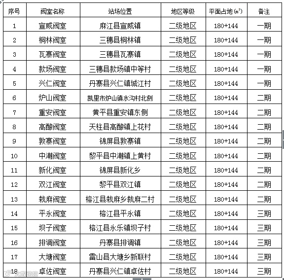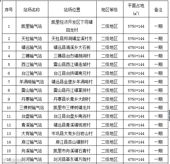 根据黔东南州天然气“县县通”输气管道线路走向及管道功能,分三期进行,计划建设17条天然气管道,23座输气站和18座阀室。