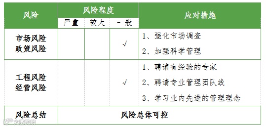 经营风险:本项目属于系统性清洁环保项目,管理需有诸多细节,如果管理混乱、经营不善就可能给项目带来损失,存在一定的经营风险。
