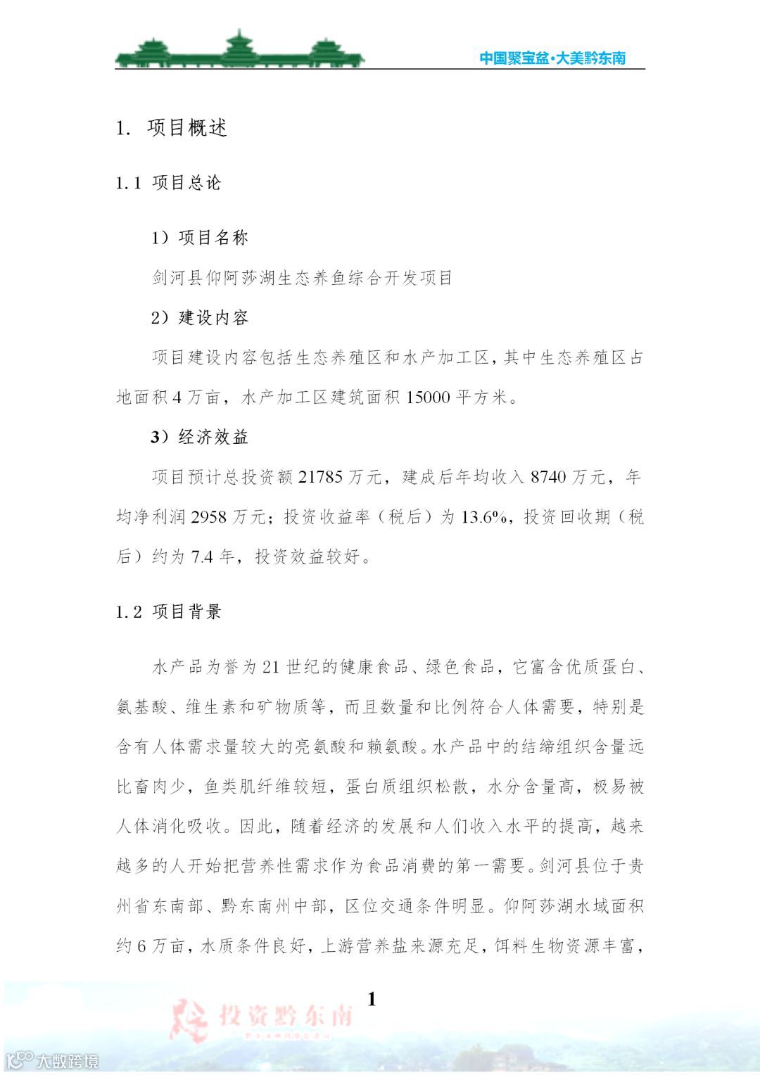 剑河县仰阿莎湖生态养鱼综合开发项目