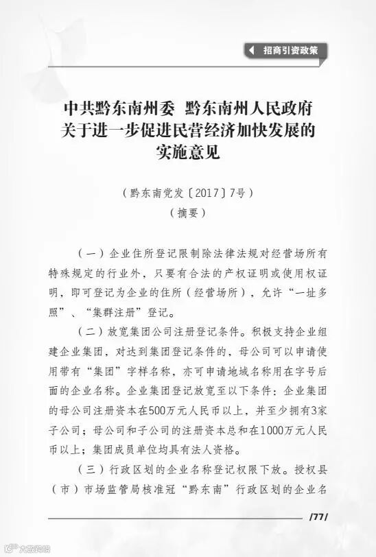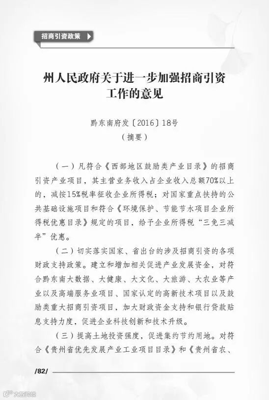 导读:投资黔东南州优惠政策摘要汇编