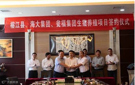 海大集团是一家集研发、生产和销售水产饲料、畜禽饲料、水产饲料预混料以及健康养殖为主营业务的高科技型上市公司,也是瓮福集团的长期合作伙伴。瓮福集团是榕江对口帮扶单位,为充分发挥企业的资源优势,做好借外力催生内生动力,在瓮福集团的牵引和洞察海大集团投资意向基础上,榕江县依托自然资源和基础产业优势,围绕大扶贫领域,成立县级项目建设领导小组,于2017年2月18日登门拜访海大集团,并成功签订战略框架协议。