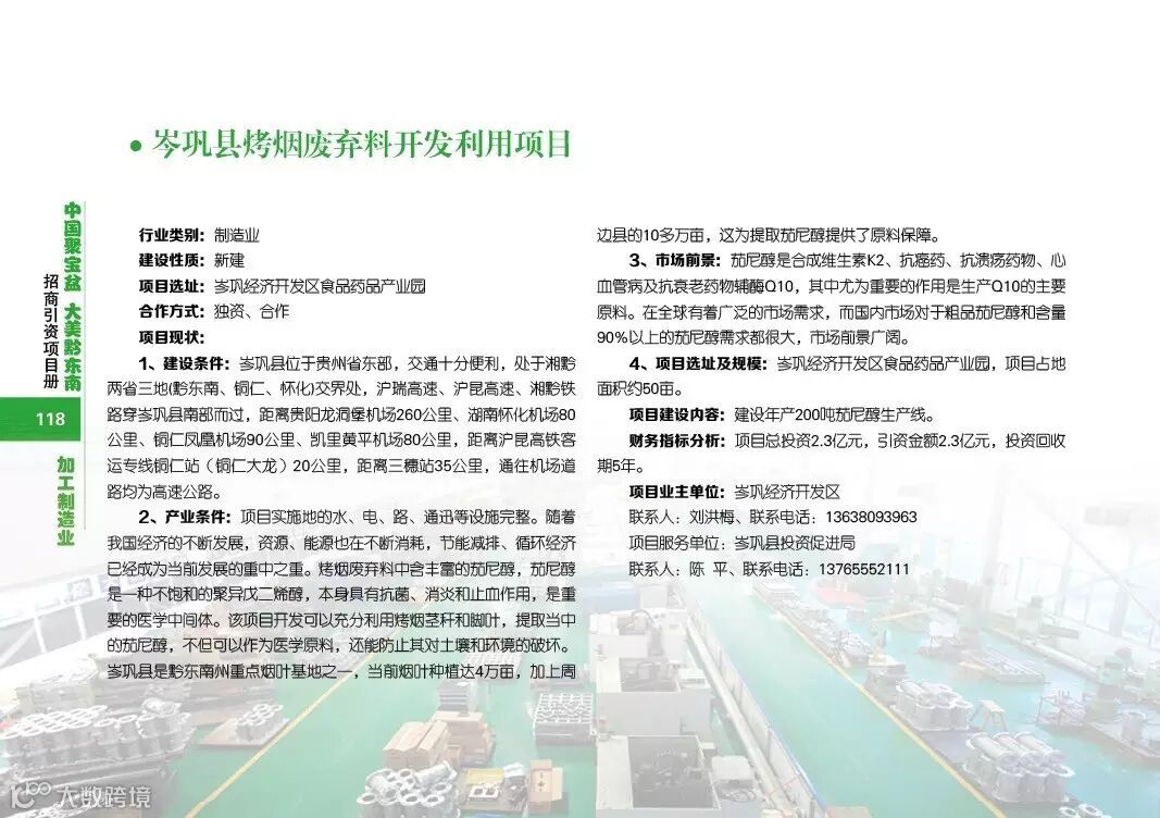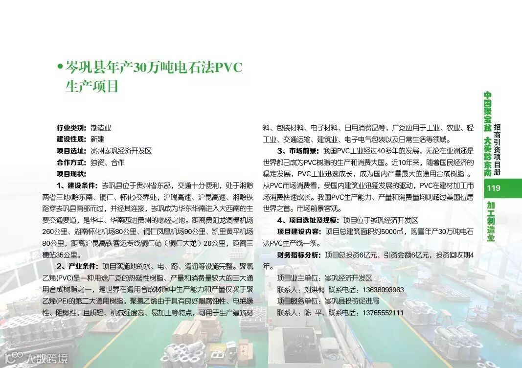 黔东南招商引资项目加工制造业类(岑巩 从江)