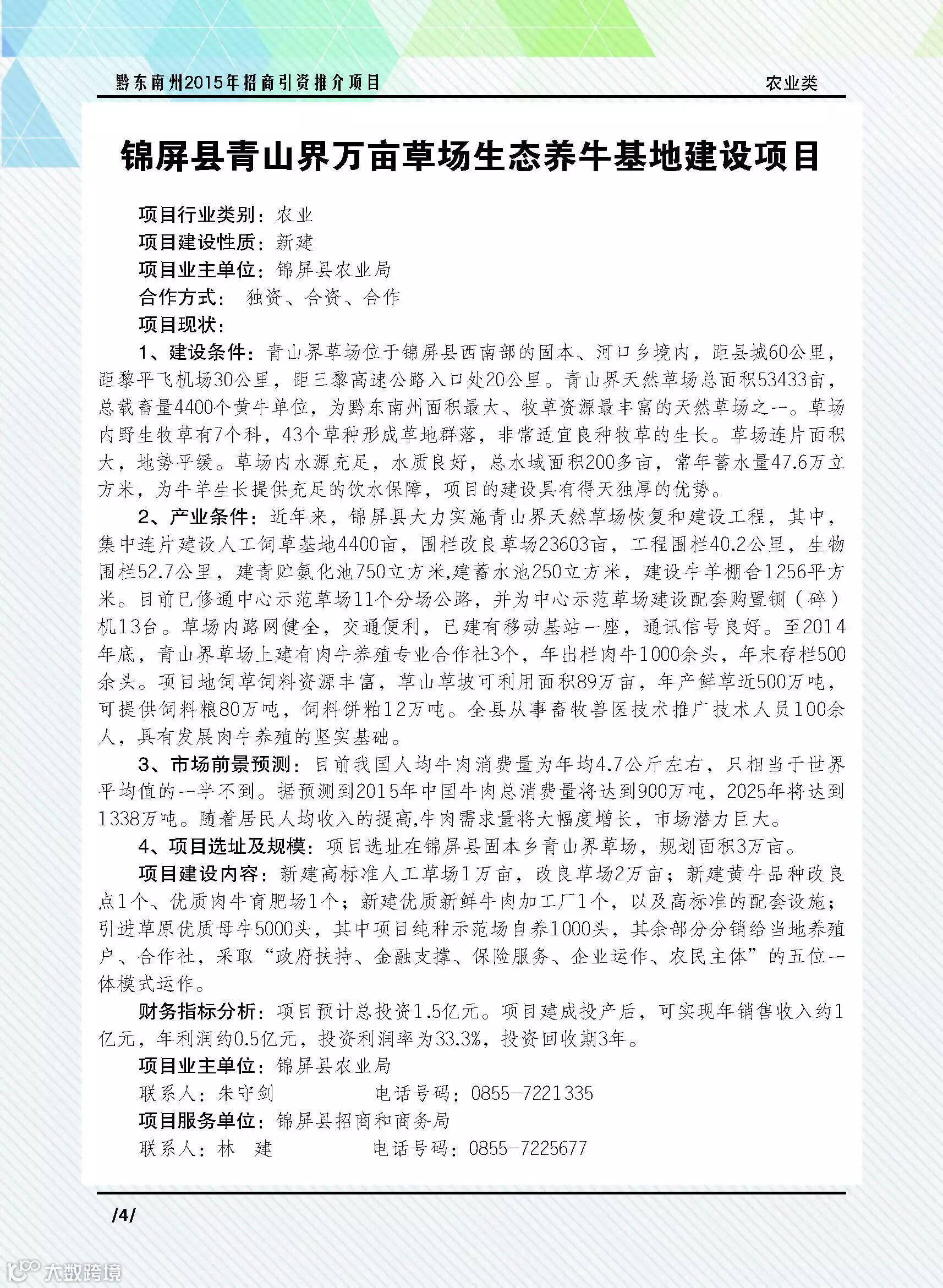 锦屏县青山界万亩草场生态养牛基地建设项目