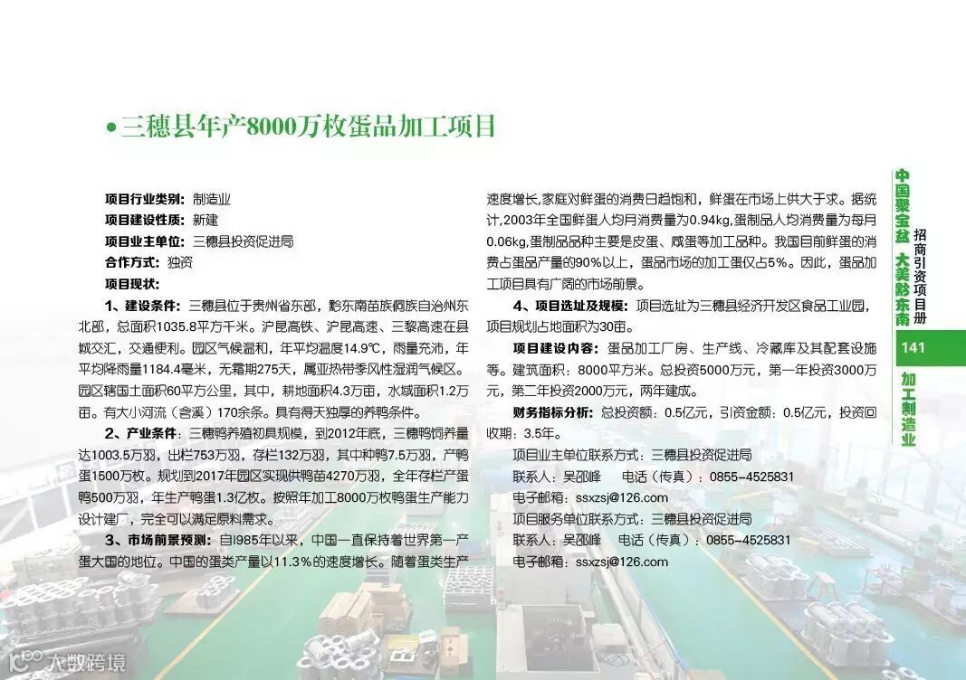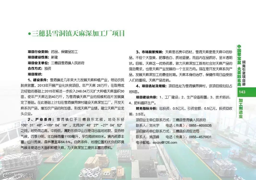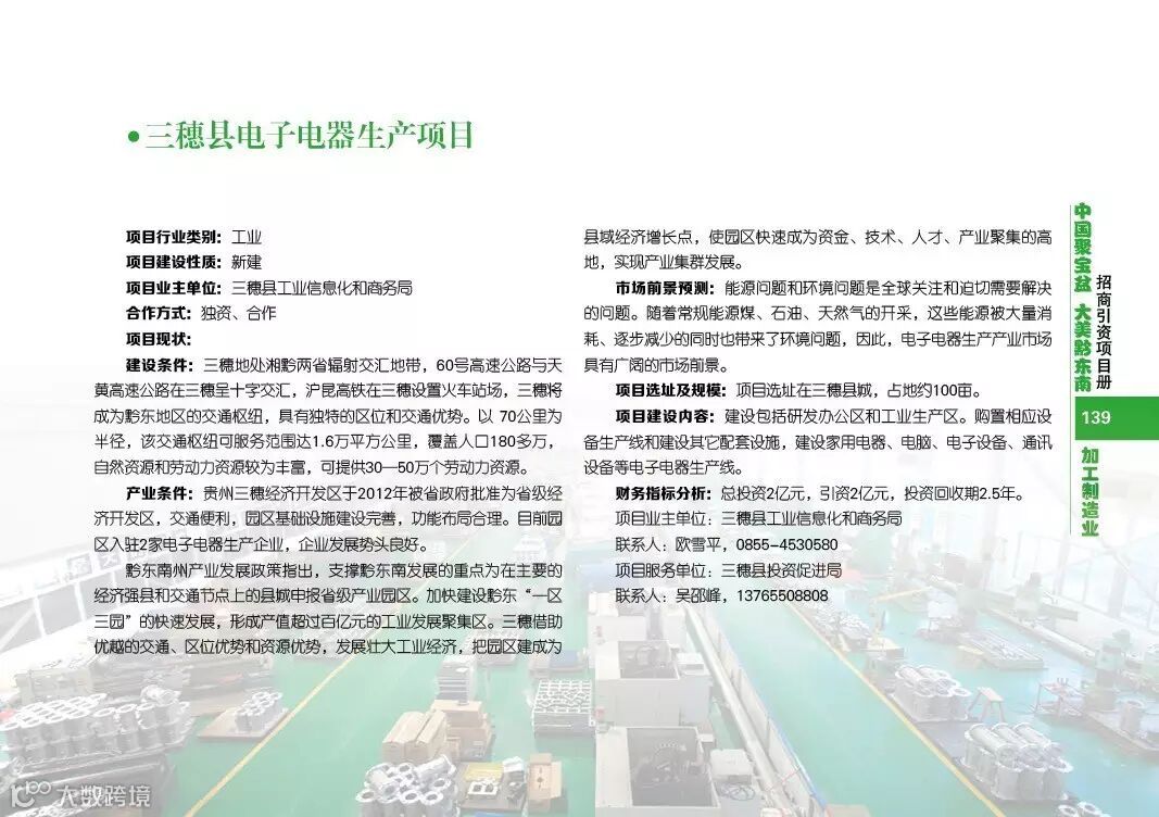 黔东南招商引资项目加工制造业类(三穗 施秉)