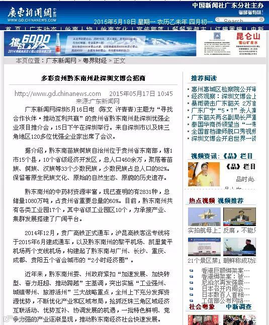 广东新闻网深圳5月16日电 (陈文 许青青)主题为“寻找合作伙伴·推动互利共赢”的贵州省黔东南州赴深圳优强企业项目推介会,15日下午在深圳举行。来自深圳市以及珠三角地区120多位优强企业家出席了会议。