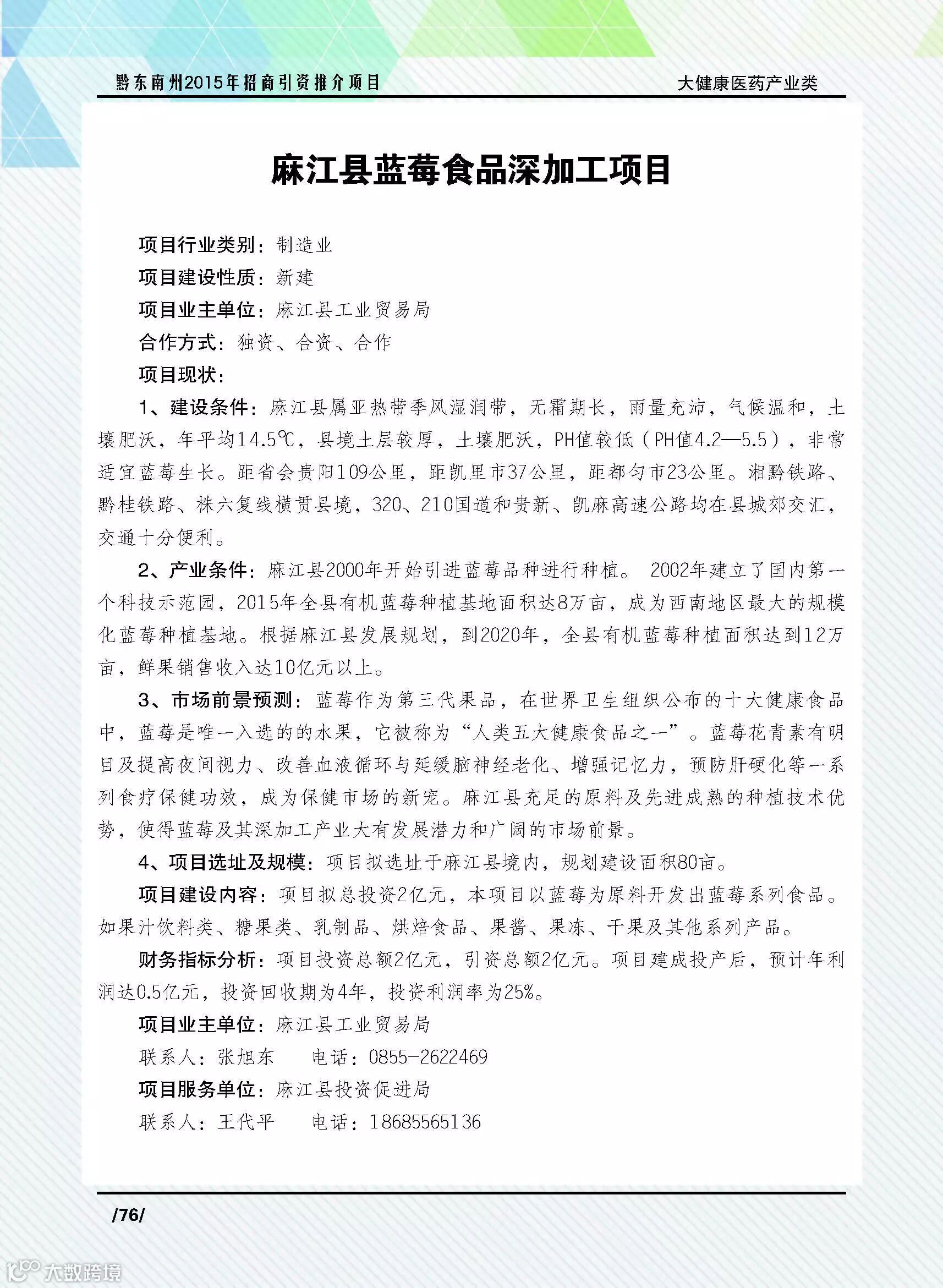 麻江县蓝莓食品深加工项目