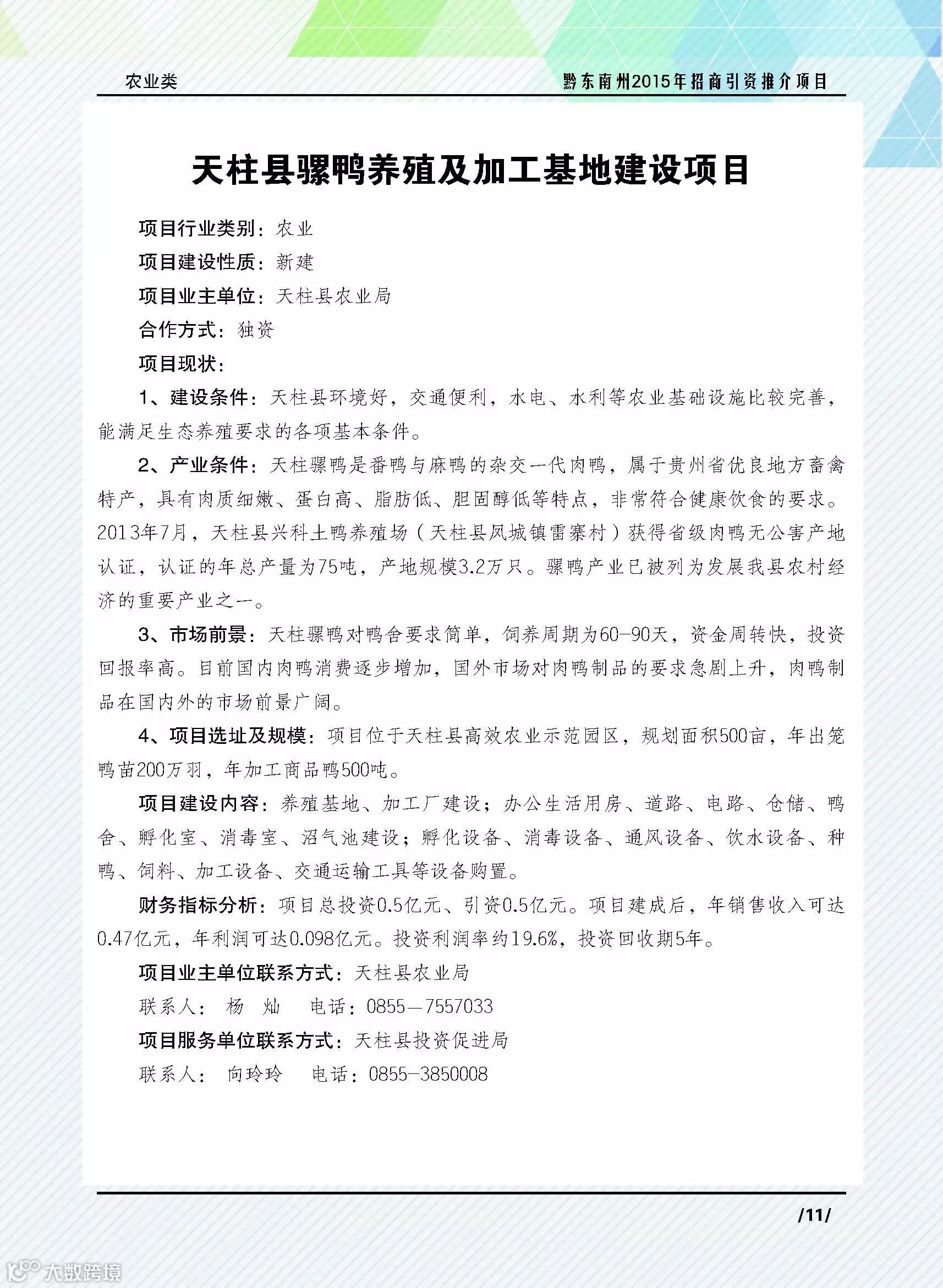 天柱县骡鸭养殖及加工基地建设项目