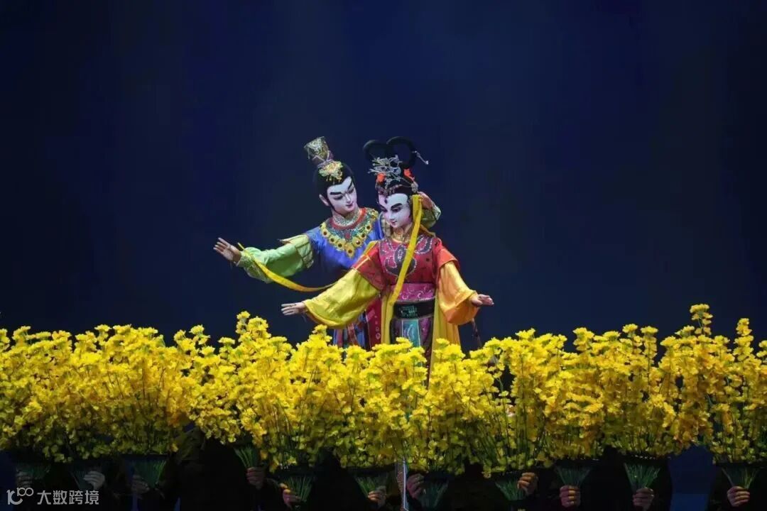 木偶舞蹈《梁祝》改编自家喻户晓的爱情传说,讲述了梁山伯与祝英台生死相随、最终化蝶的凄美故事。