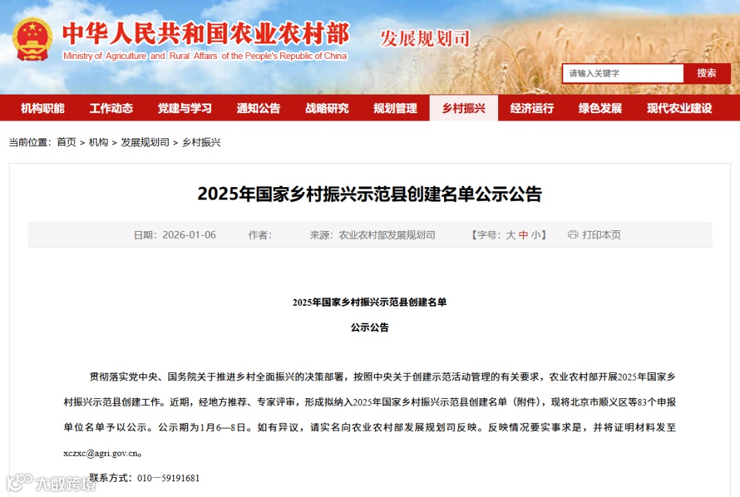 农业农村部公示了