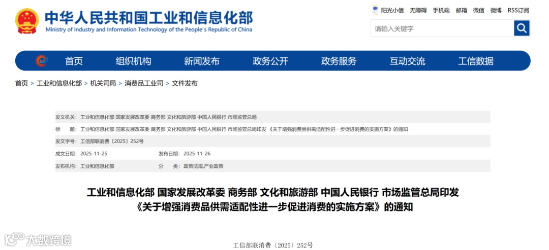 日前,经国务院同意,工业和信息化部、国家发展改革委、商务部、文化和旅游部、中国人民银行和市场监管总局联合印发《关于增强消费品供需适配性进一步促进消费的实施方案》,于11月26日正式发布。