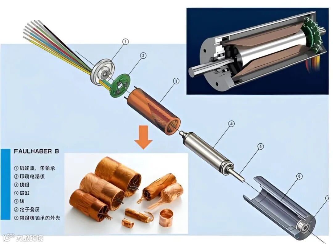 一种采用无铁芯转子的直流永磁伺服控制电机,由于采用无铁芯转子结构空心杯电机消除了因铁芯形成涡流而造成的电能损耗,其重量和转动惯量大幅降低,提高了电机的运转性能。是人形机器人灵巧手的关键部件,具有较高的技术壁垒。