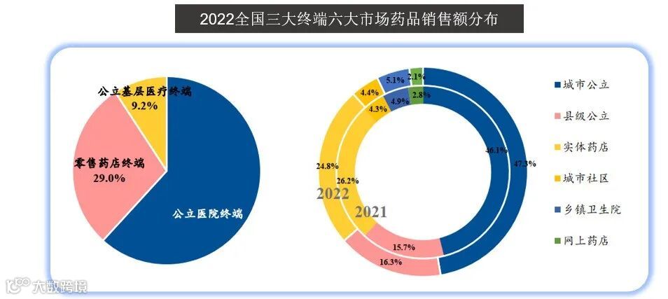 但 2022 年公立医疗机构有点 “踩刹车”:销售额降了 1.4%,一方面是疫情反复打乱了看病节奏,另一方面集采把部分药价压了下来。有意思的是,实体药店和网上药店却逆势猛涨 —— 疫情催生了囤药需求,高价药 “处方外流” 像外卖一样从医院流到药店,加上慢性病、专科用药的需求被激活,相当于给零售市场装了 “增速马达”。