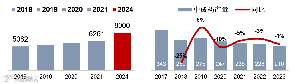 这门生意的规模涨得十分迅猛:2021 年市场刚过 6200 亿,2018 - 2021 年每年平均飙 7.72%,到 2024 年直接冲破 8000 亿大关,背后全靠老龄化催生的慢病用药需求和政策给中医药 “开绿灯”。