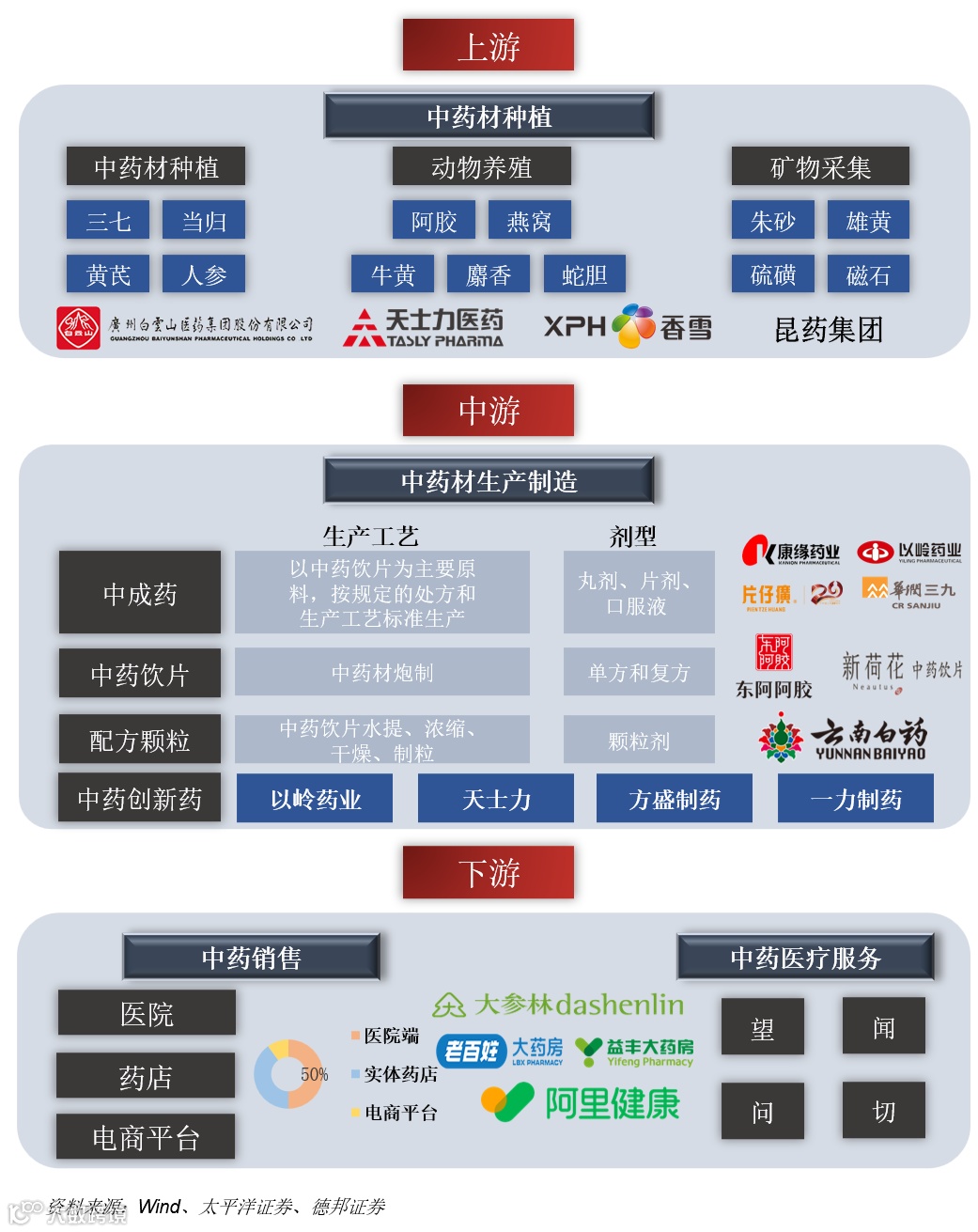 现在这地界儿全是 “大厂扎堆”:白云山、同仁堂、云南白药这些巨头全挤在中游搞制造,利润也更 “厚实”。举个例子,中成药做注射液得搞定无菌工艺,配方颗粒要精准复刻传统汤剂成分,这些技术活让中游成了产业链里的 “利润高地”,就像手机厂靠组装和系统优化赚走大头差价。