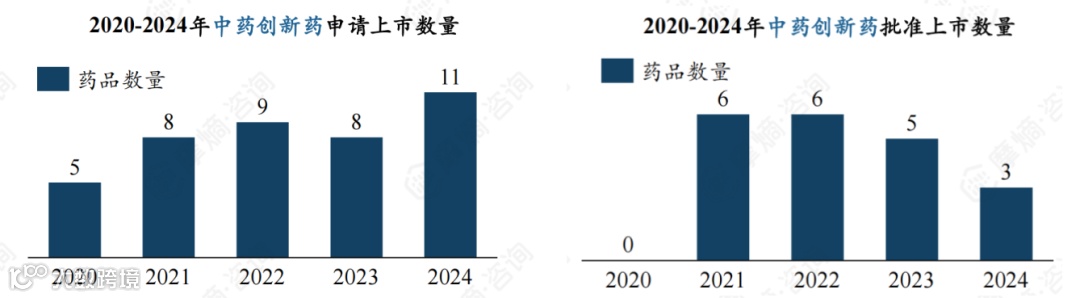 2020 - 2024 年中药创新药获批呈现 “头部集中、多数跟跑” 格局: