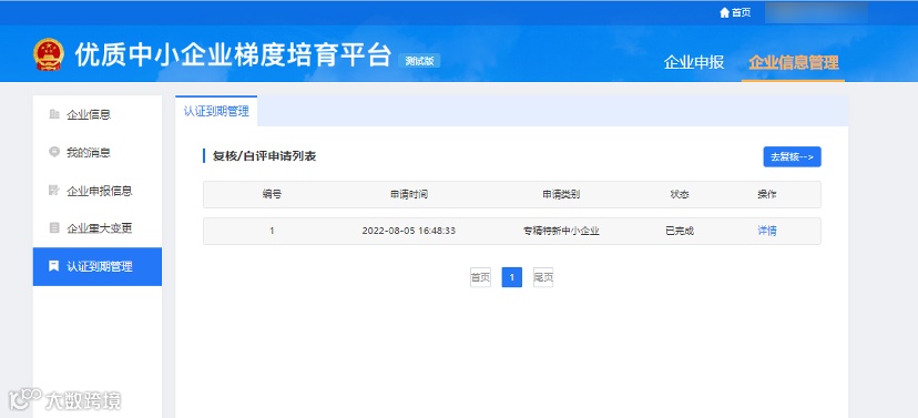 三年有效期到期前,认定企业可在认证到期管理模块提交复核申请。