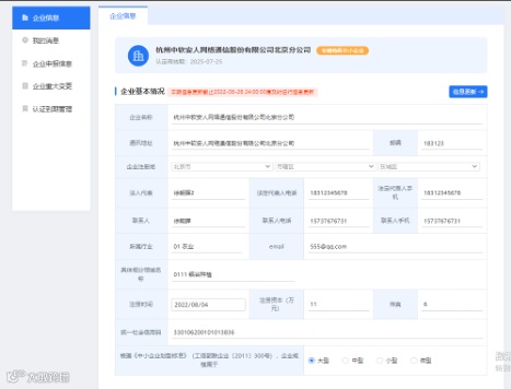主要功能:登录状态下,维护企业基本信息、更新企业基本信息(指定时间内)、查看消息通知、企业提交重大变更、企业提交资质复核申请。