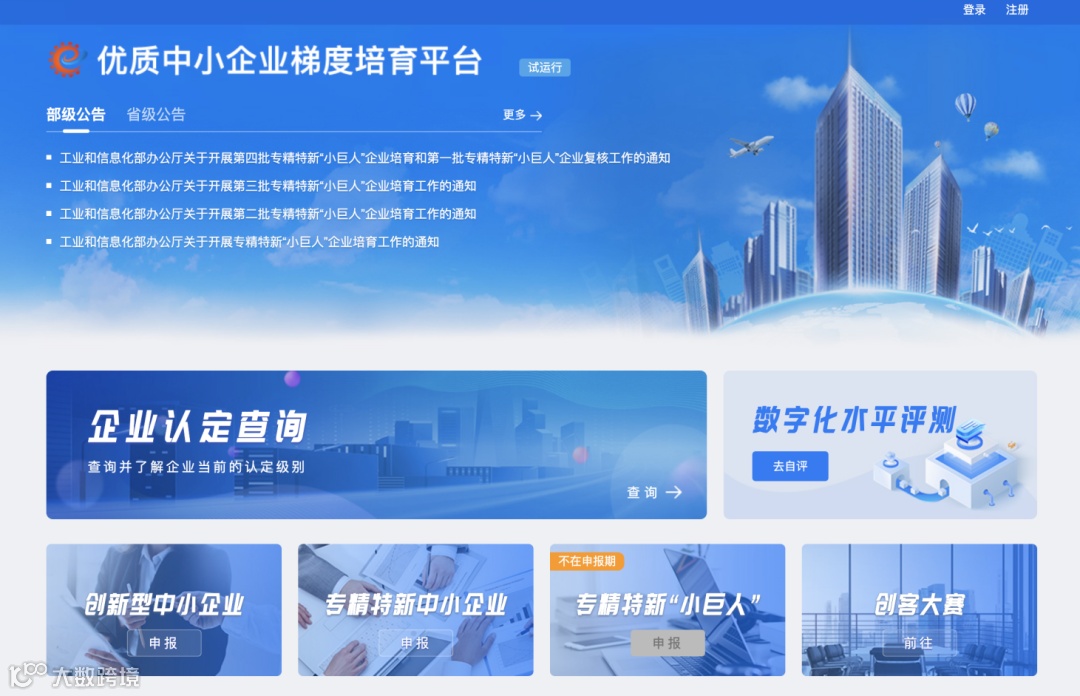 想在今年申请成为“专精特新”中小企业,首先,需要登陆【优质中小企业梯度培育平台】,网址:https://zjtx.miit.gov.cn/zxqySy/main