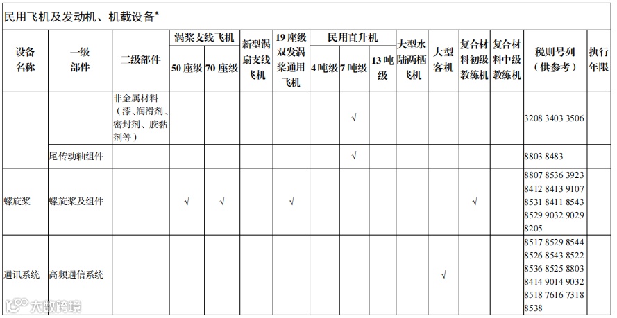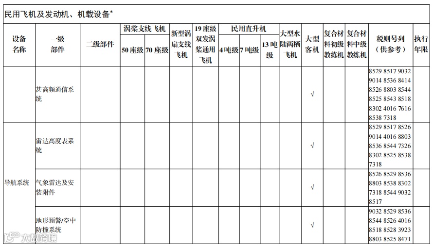 3. 民用飞机及发动机、机载设备*