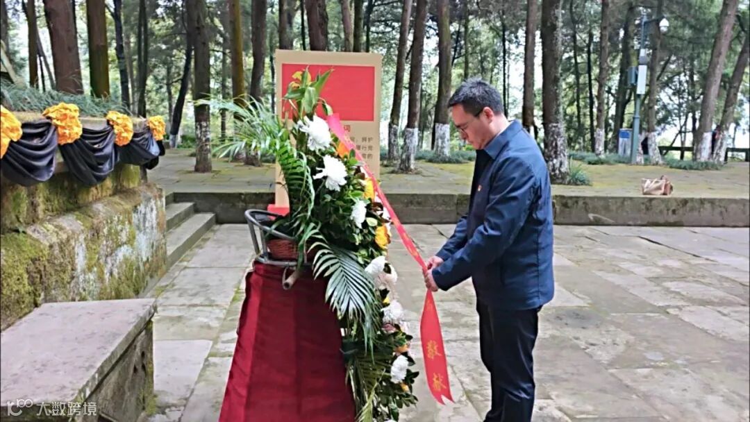 在红军烈士纪念碑前,青山环抱、松柏翠绿,全体同志怀着崇高敬意,缅怀革命先烈,敬献花篮、鞠躬致敬,深情表达对革命先烈的无限崇敬之情。