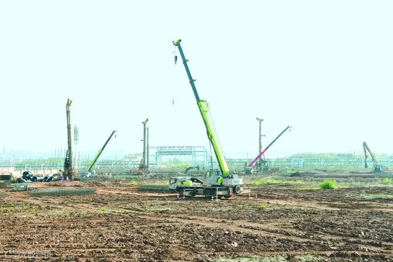 永盈新材料年产80万吨功能性新材料一体化产业链项目施工现场。