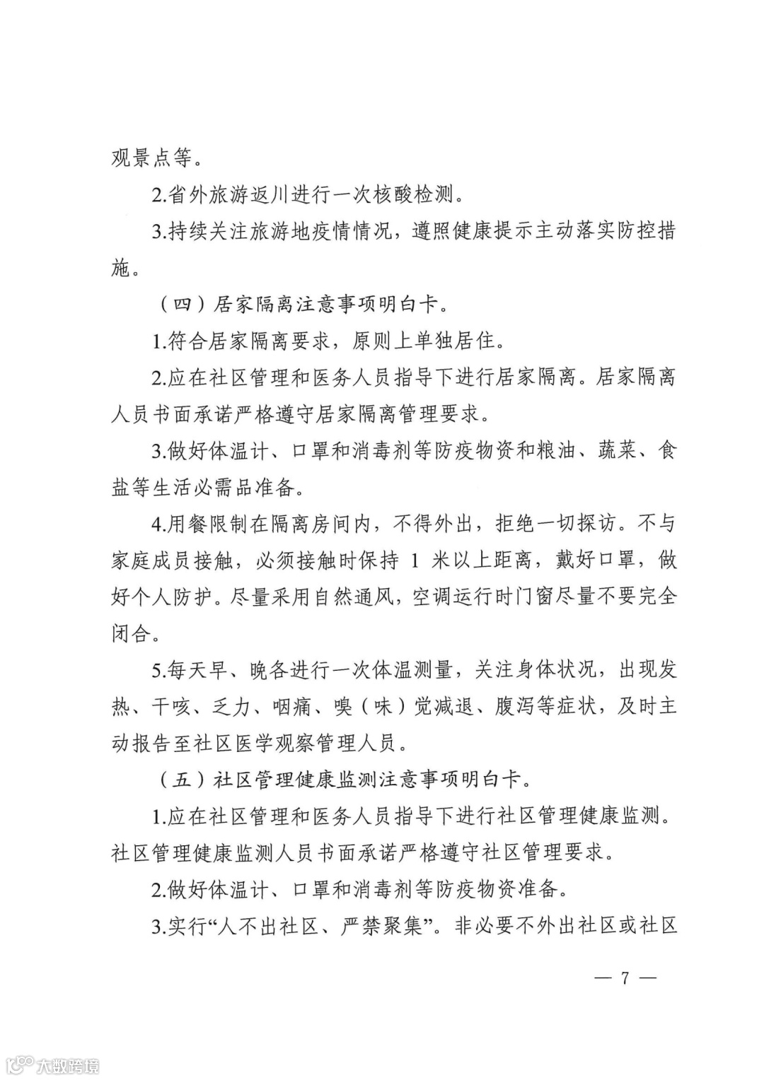 (四)居家隔离注意事项明白卡。