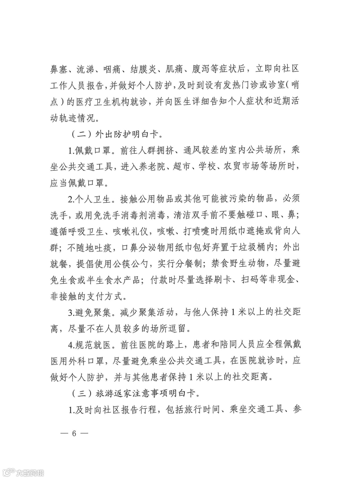 (二)外出防护明白卡。
