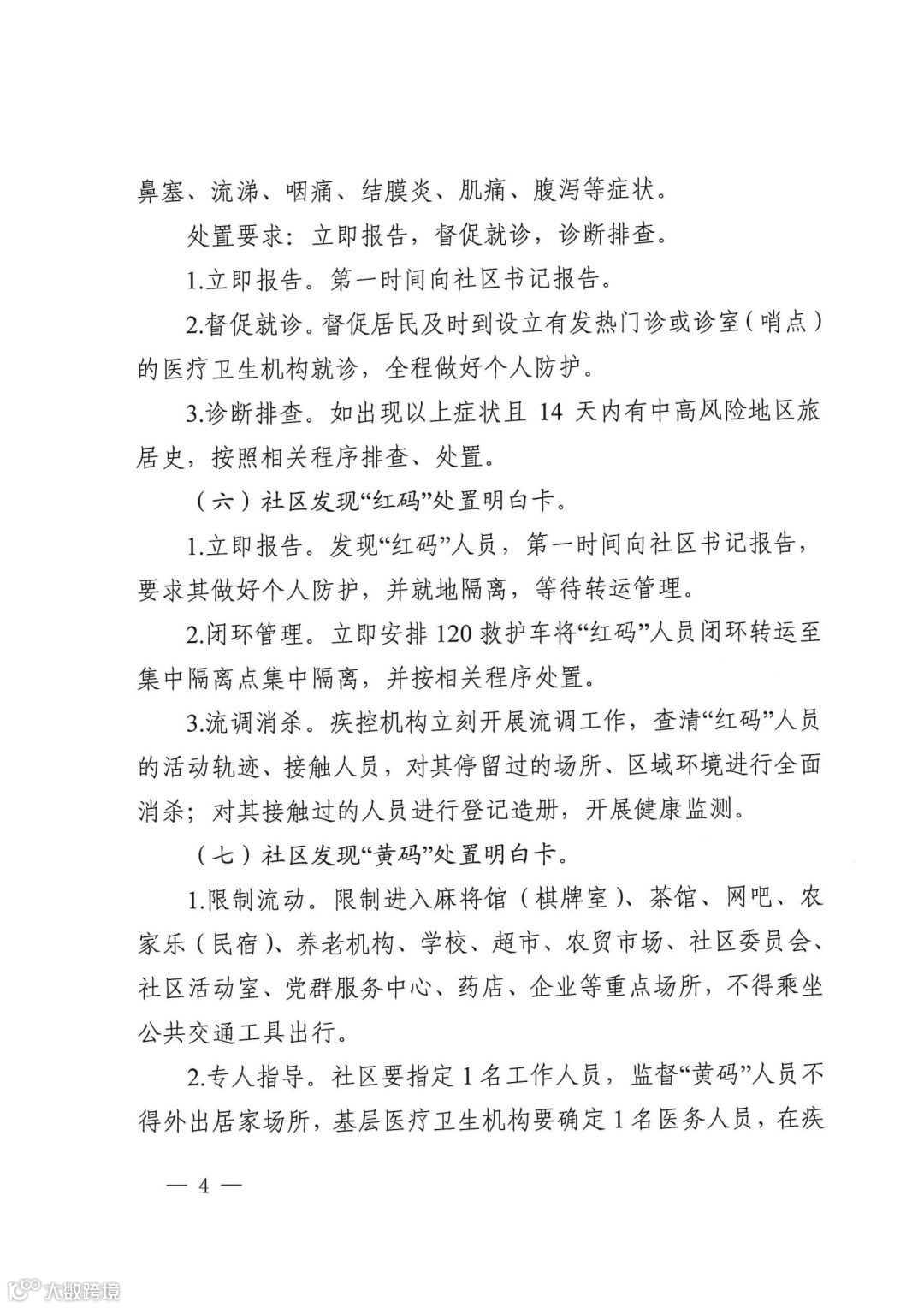 (六)社区发现“红码”处置明白卡。