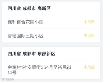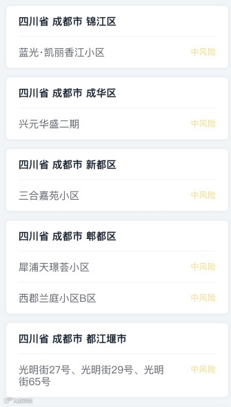 11月16日18时,国务院客户端疫情风险等级查询更新,四川成都成华区华府沙河小区、锦江区首创娇子1号小区已降为低风险地区。