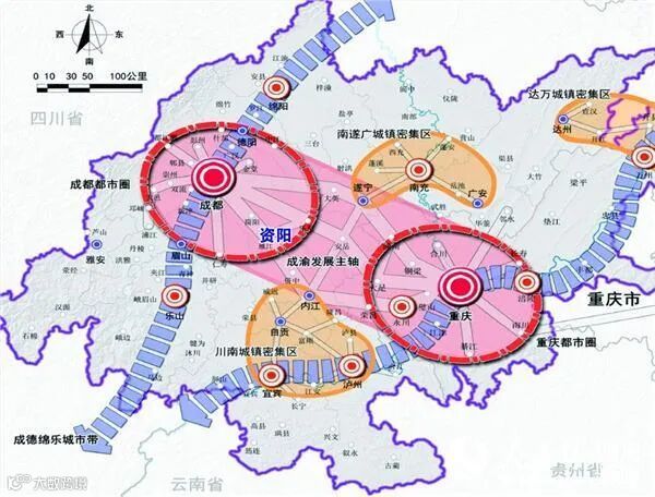 成渝城市群空间格局示意图(来源:中国一带一路网)