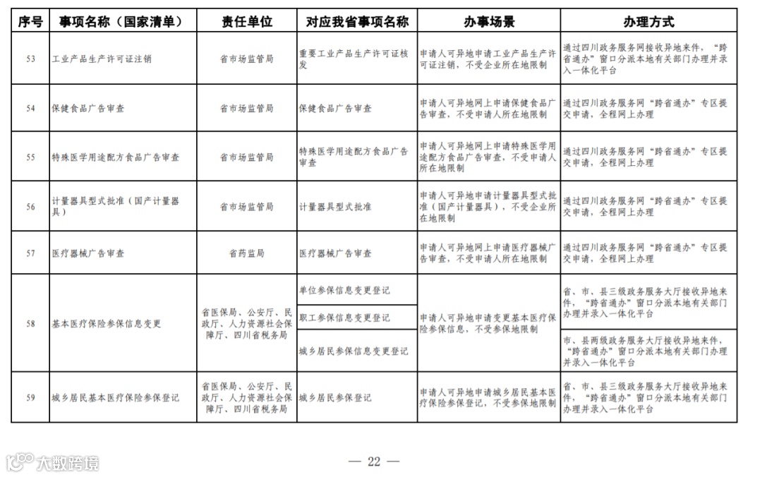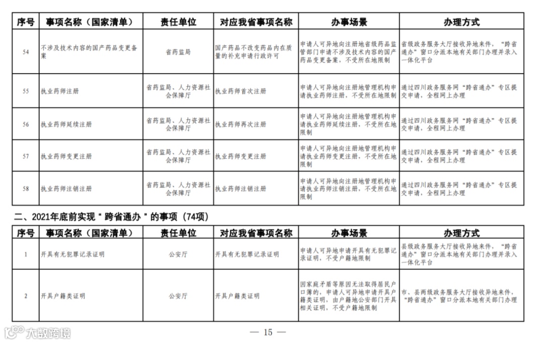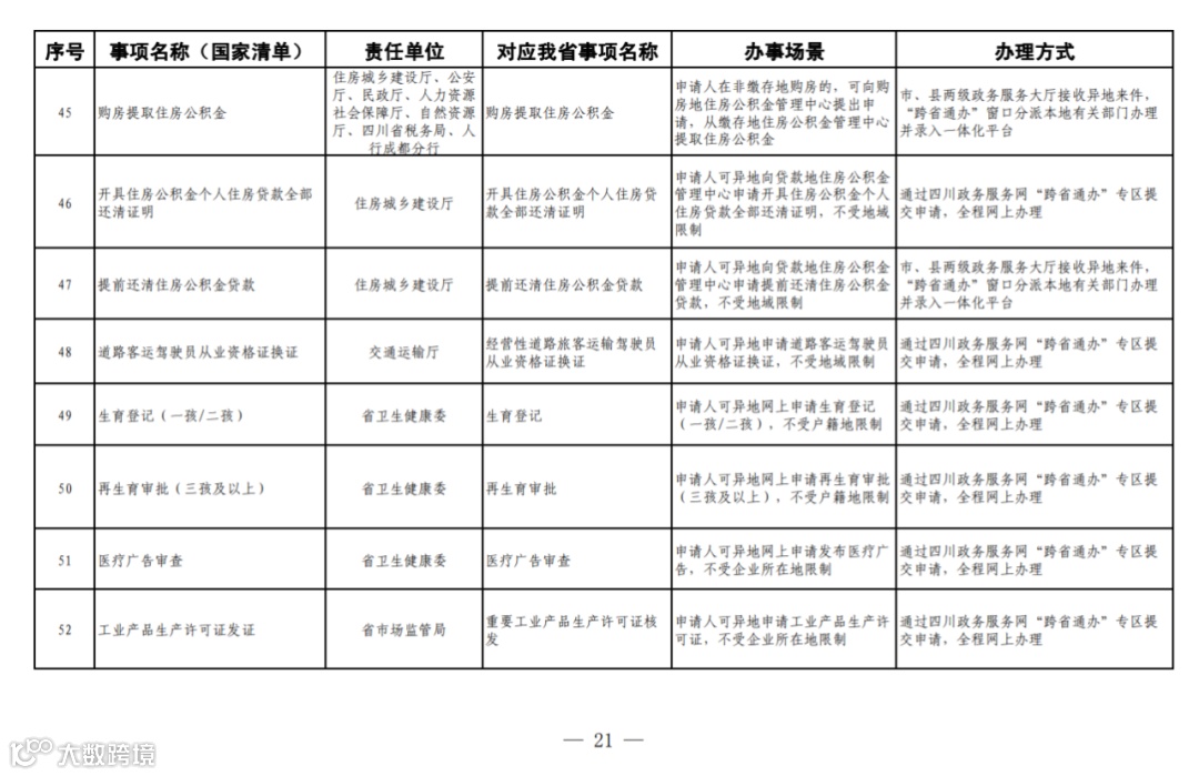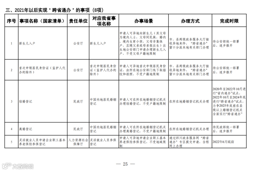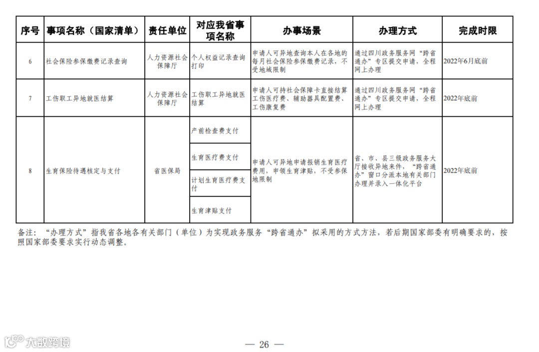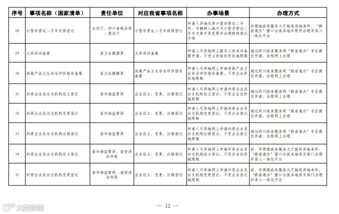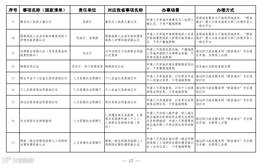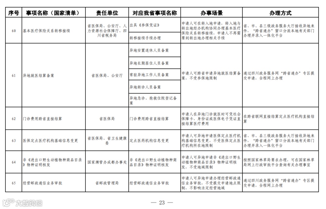 四川省政务服务“跨省通办”任务清单