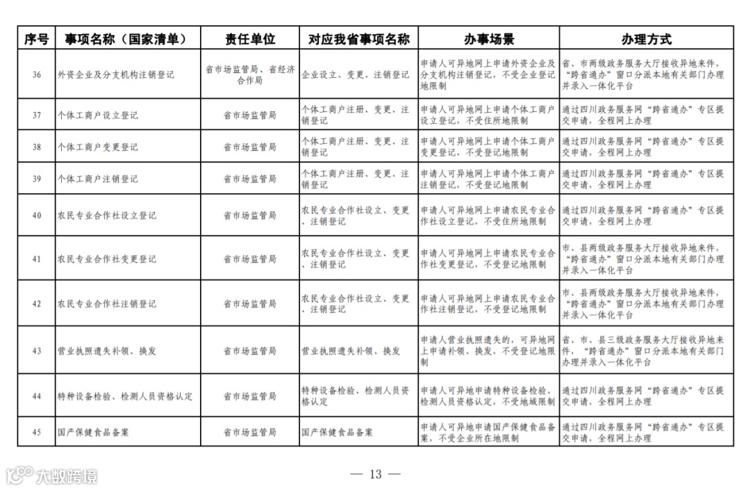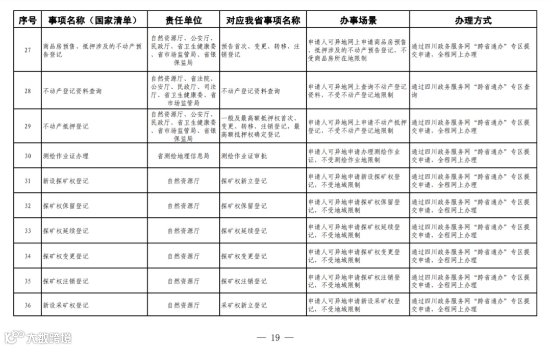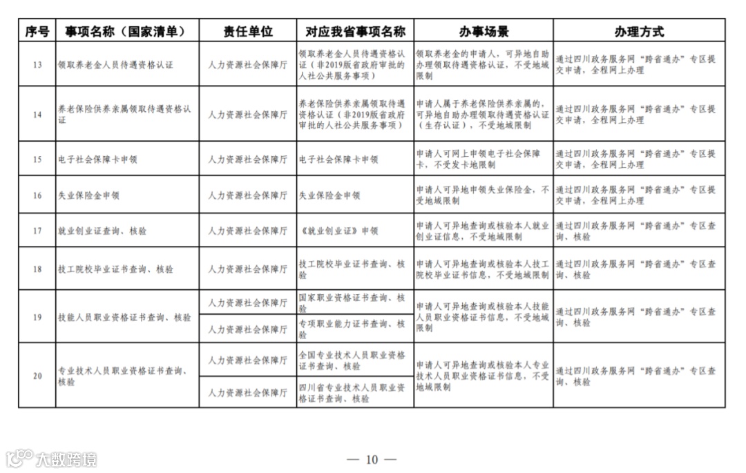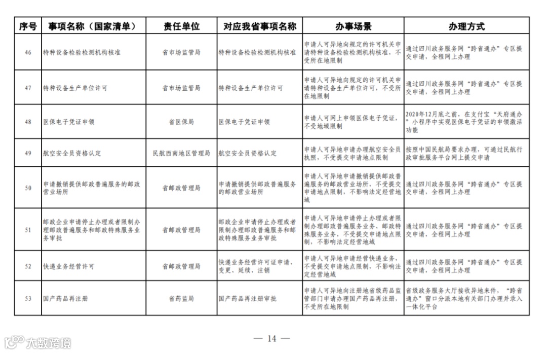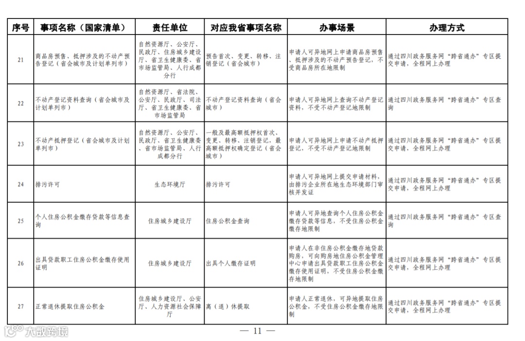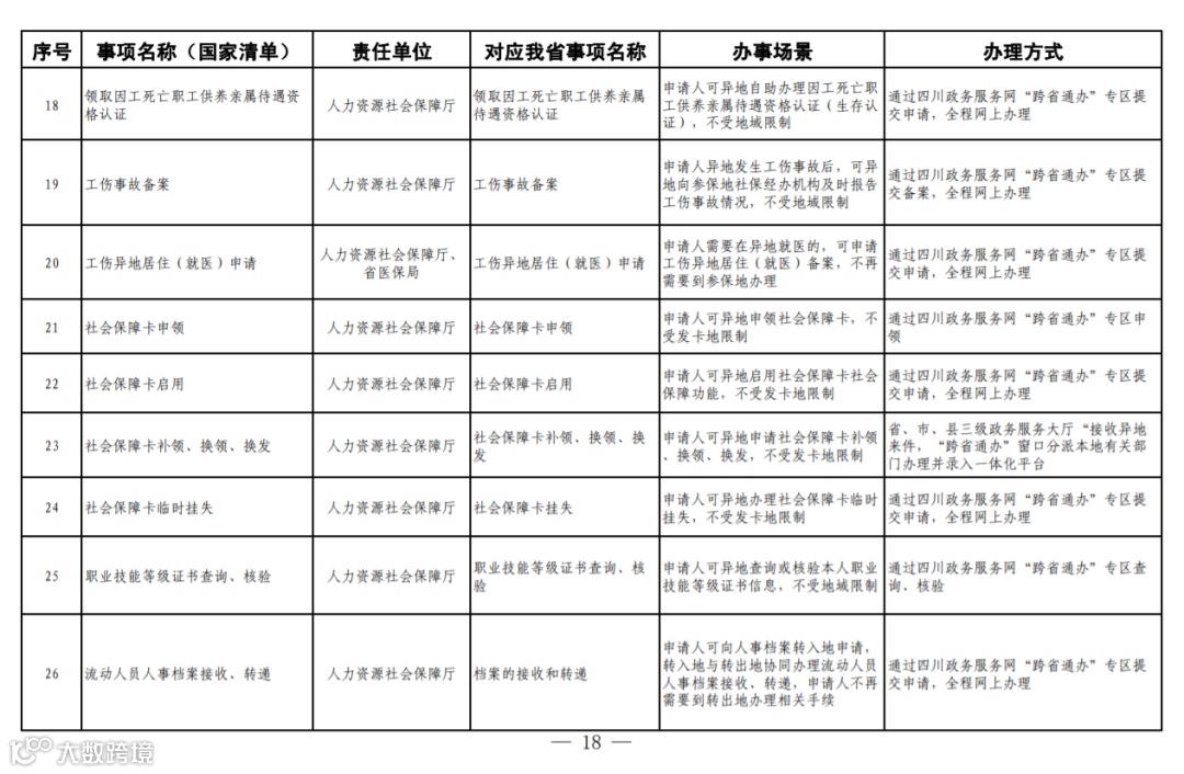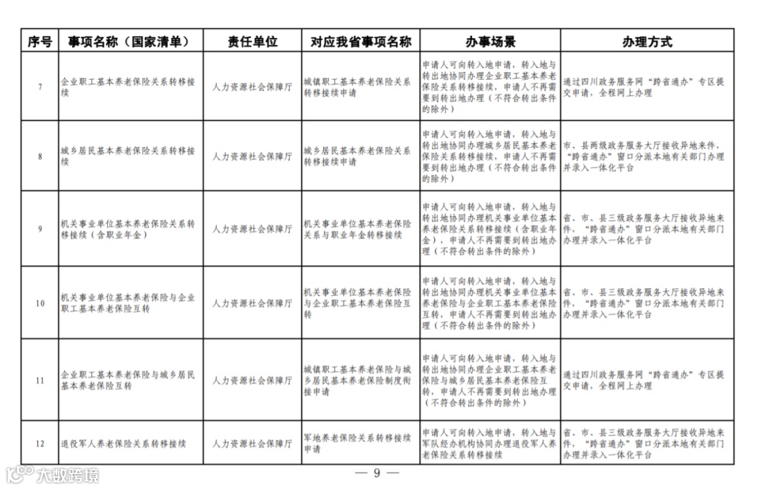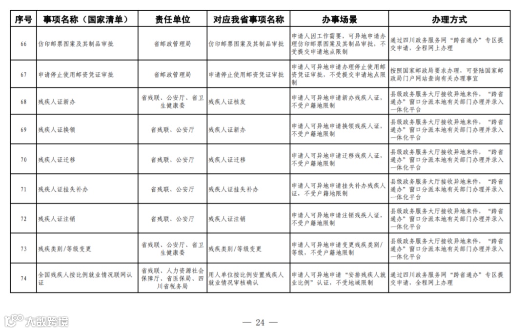 四川省政务服务“跨省通办”任务清单