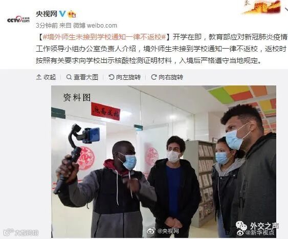 开学在即,教育部应对新冠肺炎疫情工作领导小组办公室负责人介绍,境外师生未接到学校通知一律不返校,返校时按照有关要求向学校出示核酸检测证明材料,入境后严格遵守当地规定。