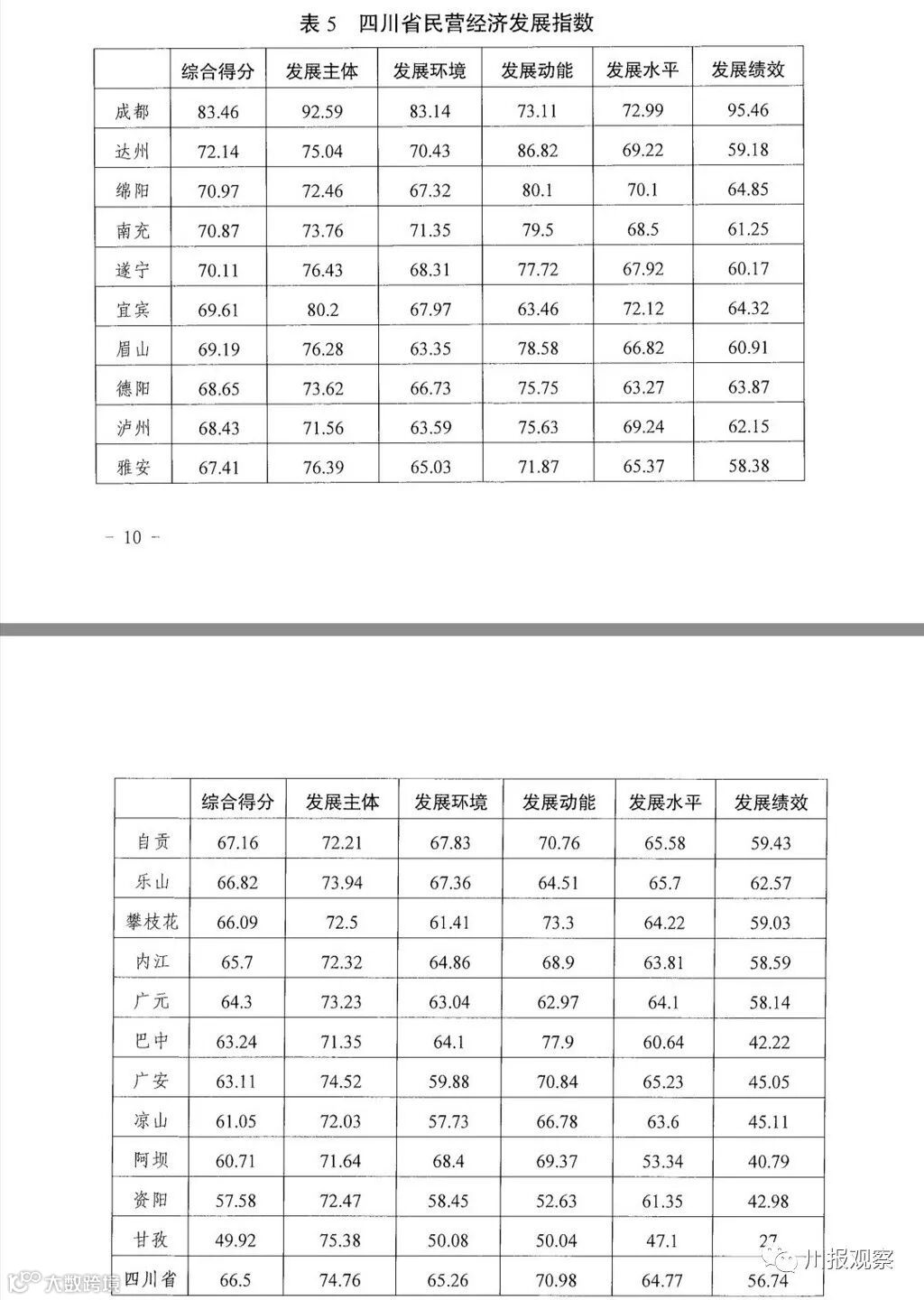 发展水平分指数排前三位的分别是成都、宜宾、绵阳。
